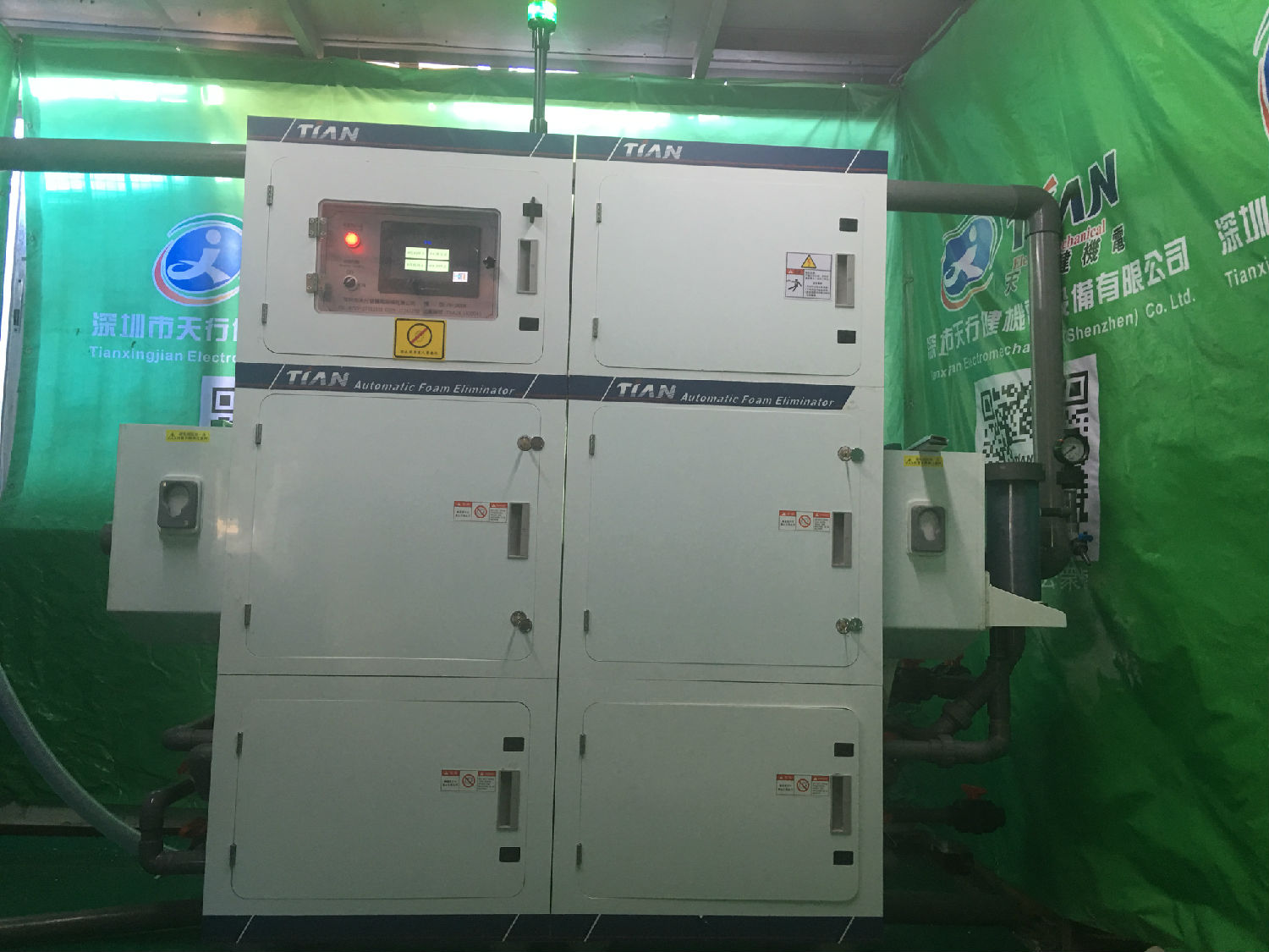 显影用破泡机出嫁前师傅在做最后的安全标识检查
